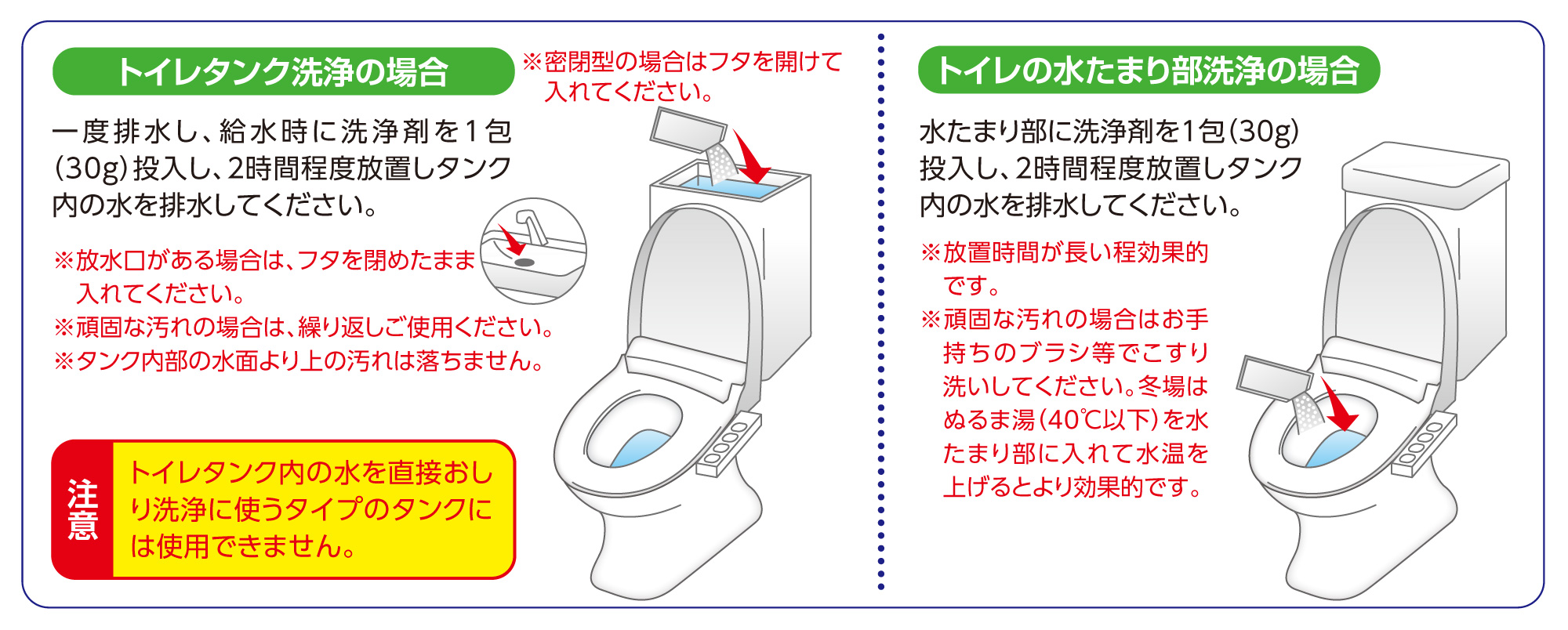 ・トイレタンクが密閉型の場合はフタを開けて投入してください。