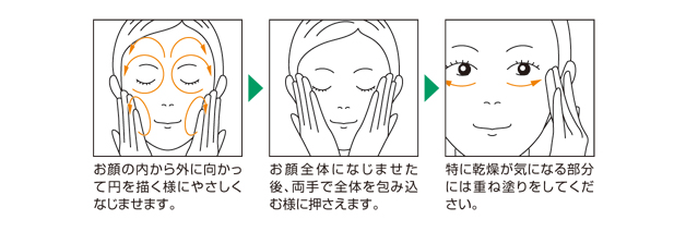 洗顔後、適量を手に取りお顔全体または全身にやさしくなじませてください。