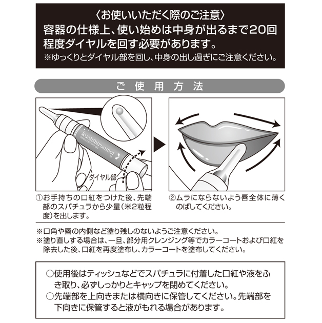 これ1本で口紅が落ちにくくなるだけでなく、うるおい成分、ツヤキープ成分を配合しているので、乾燥しにくく唇の荒れもケアできます。