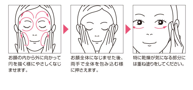 洗顔後、適量を手に取りお顔全体または全身にやさしくなじませてください。