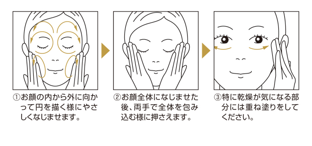 洗顔後、適量を手に取りお顔全体または全身にやさしくなじませてください。